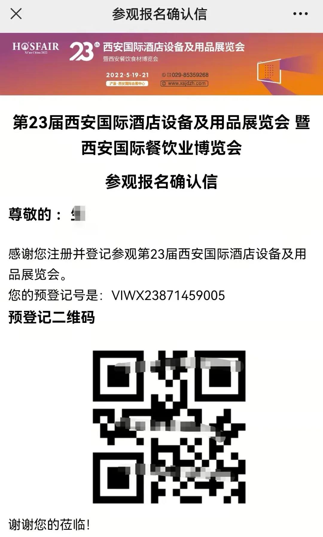 獲取預登記二維碼,完成預登記。(請保留此截圖,屆時您可憑此二維碼到預登記觀眾注冊通道換取參觀胸卡,快速入場免費參觀)