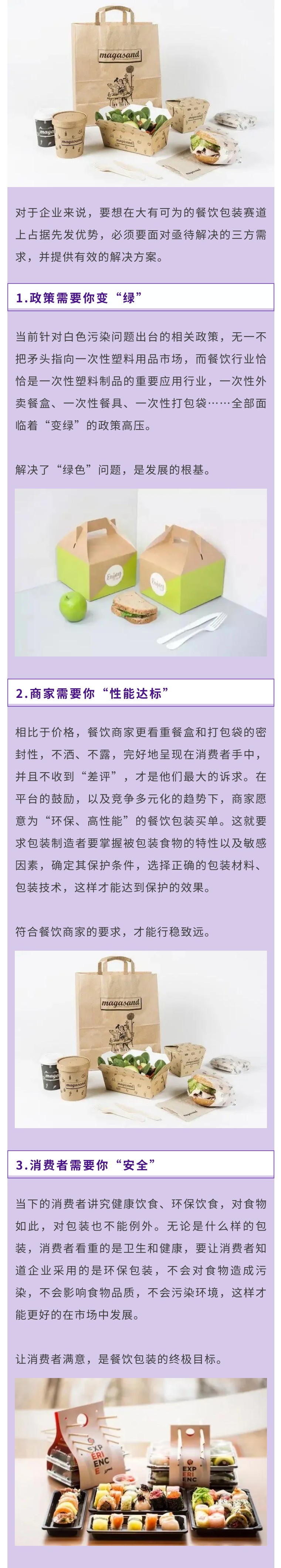 ①環(huán)保餐飲食品包裝:紙質(zhì)包裝、降解塑料包裝、植物纖維模塑包裝、鋁箔包裝等;